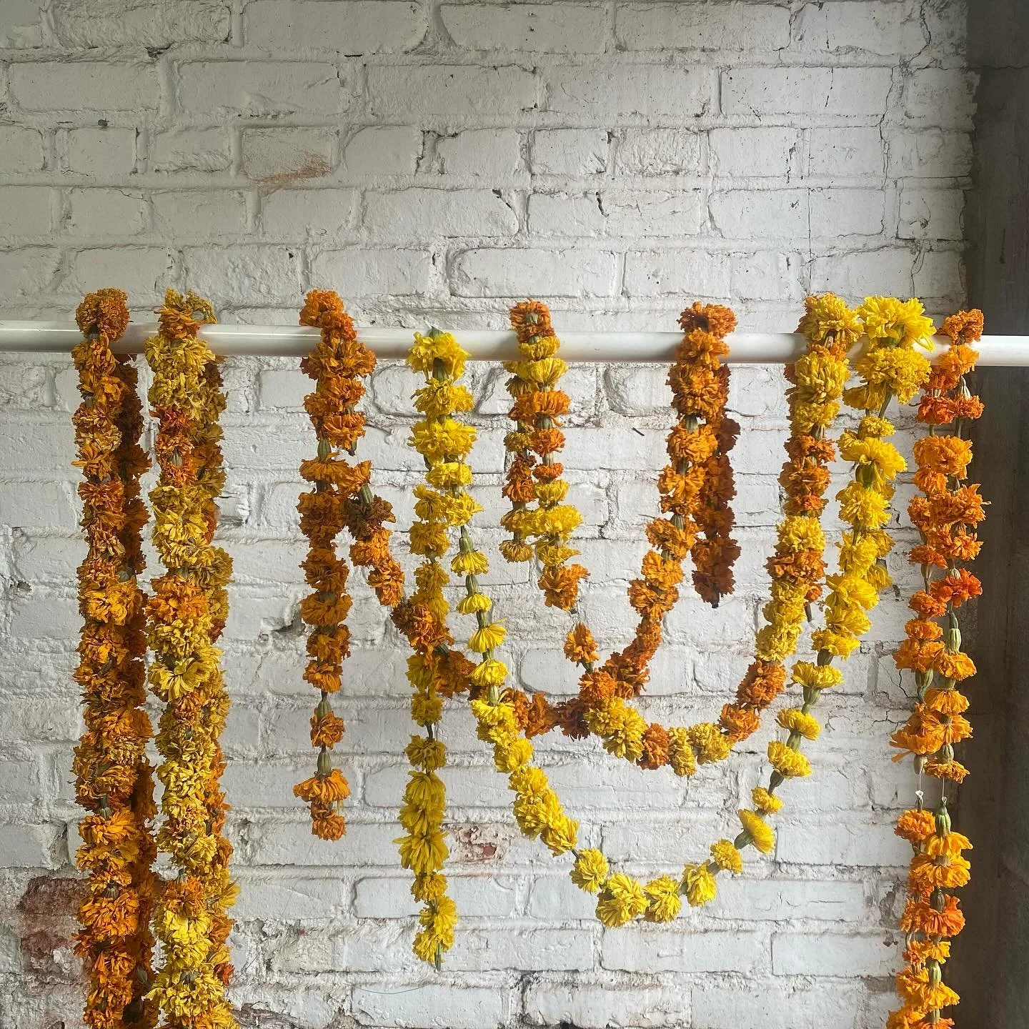Beautiful dried Marigold garland, perfect for holiday or everyday. Celebrate the beauty of Marigolds even after our growing season ends :) Three versions available: Orange, Yellow, or Mixed. Handmade, so every garland is slightly different, but all range around 5ft in length and are hung on clear fishing line.